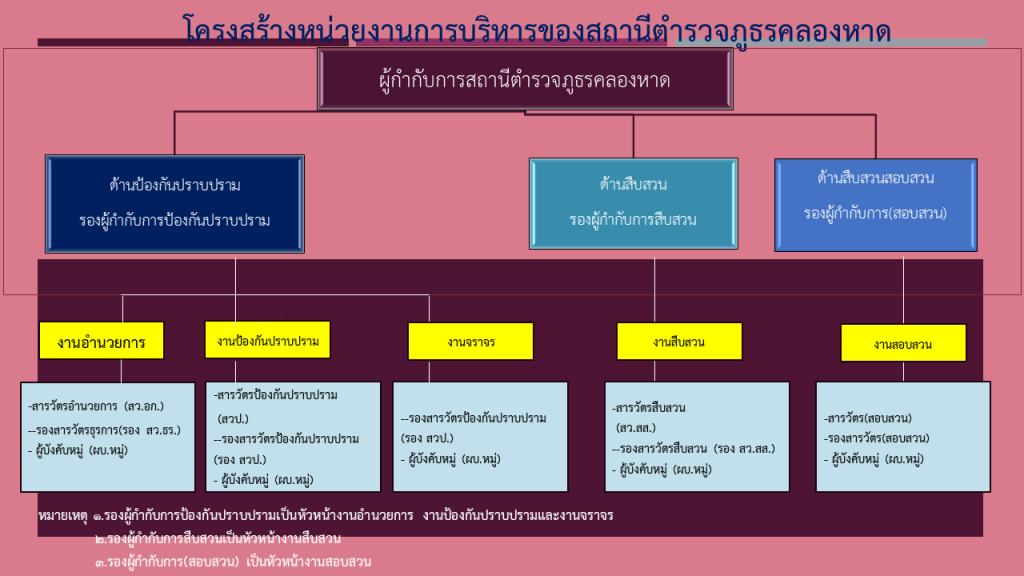 มีรองผู้กำกับการป้องกันปราบปรามเป็นหัวหน้างาน มีหน้าที่รับผิดชอบเกี่ยวกับการวางแผน สั่งการ ควบคุม กำกับดูแล ตรวจสอบ ติดตามและประเมินผลงานที่เกี่ยวกับนโยบาย ยุทธศาสตร์ และแผนงานสถานีตำรวจ งานการบริหารบุคลากร การศึกษาการฝึกอบรม งานวิชาการ สวัสดิการ การพัฒนา การบริหารจัดการ งบประมาณ การเงิน การพัสดุ การพลาธิการและสรรพาวุธ การส่งกำลังบำรุง รวมทั้งลักษณะงานที่เกี่ยวข้องหรือเป็นส่วนประกอบเพื่อส่งเสริมหรือสนับสนุนการปฏิบัติงานในสถานีตำรวจ โดยจำแนกออกเป็นงานต่างๆ